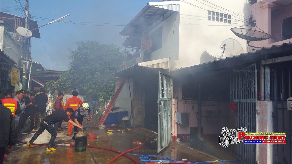 ต่อมานายปัญญา วงศ์ศรีแก้ว นายอำเภอปากช่อง พร้อมด้วย นายคมกฤษณ์ ลิ้มปัญญาเลิศ นายกเทศมนตรีเมืองปากช่อง ลงพื้นที่ตรวจสอบเหตุเพลิงไหม้ และควบคุมการปฏิบัติงานของเจ้าหน้าที่ จากการสอบถามนางจารุดา งามชัยเจริญ เจ้าของบ้านให้การว่า ตนและน้องสาว อยู่ระหว่างที่ทำการต้มหน่อไม้เพื่อเตรียมของไหว้ในเทศกาลตรุษจีน บริเวณชั้นล่างของตัวบ้าน จากนั้นขณะที่นางคนิดา น้องสาวได้เข้าไปทำการปิดแก๊สนั้น จู่ๆได้มีเสียงดังคล้ายระเบิดเกิดขึ้น และมีไฟลุกลามอย่างรวดเร็ว เคราะห์ดีที่นางคนิดา ได้รับบาดเจ็บเพียงเล็กน้อย ก่อนจะมีเพื่อนบ้านเข้ามาทำการช่วยเหลือและแจ้งหน่วยงานที่เกี่ยวข้องให้การช่วยเหลือในจุดเกิดเหตุ