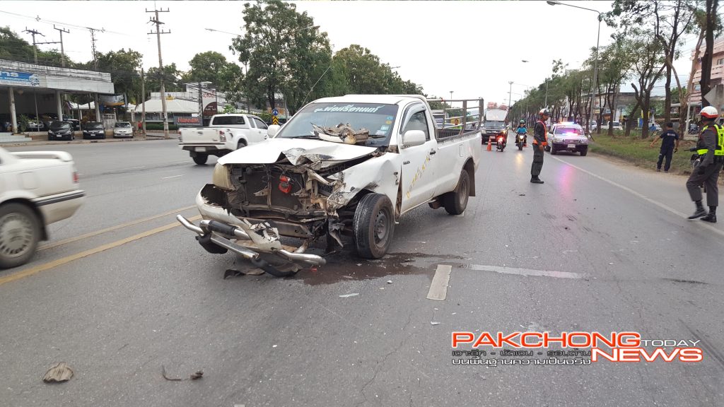 เวลา 17.15 น. วันที่ 23 พฤศจิกายน 2560 พ.ต.ต.กิติกรณ์ กาศลังกา สว.(สอบสวน) สภ.ปากช่อง ได้รับแจ้งว่ามีอุบัติเหตุ รถยนต์เฉี่ยวชนกับรถหกล้อและมีรถจักรยานยนต์ร่วมประกอบเหตุ มีผู้ได้รับบาดเจ็บ บริเวณถนนมิตรภาพสายเก่า ฝั่งมุ่งหน้าเข้าเมืองปากช่อง ตรงข้ามโรงพยาบาลกรุงเทพปากช่อง หลังได้รับแจ้งจึงรายงานให้ผู้บังคับบัญชาทราบ พร้อมรีบเดินทางไปตรวจสอบในจุดเกิดเหตุ